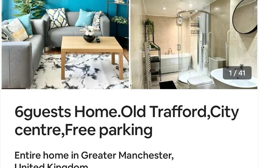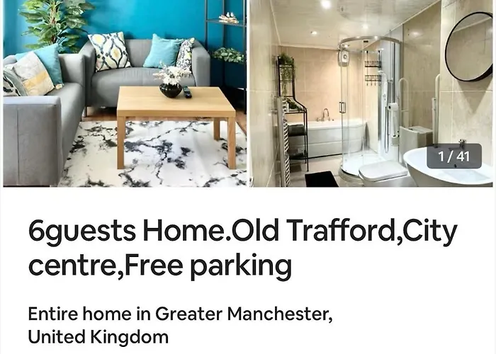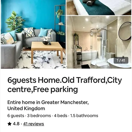 La villa 7 Guests House Old Trafford,Media City,City Centre, Free Parking viene equipada con comodidades de autoservicio, incluyendo una cocina bien equipada, una zona de comedor para que los huéspedes disfruten. La cocina también dispone de hervidor eléctrico, horno y menaje de cocina. Los huéspedes pueden comer en el restaurante Xpress Pizza, situado a unos 5 minutos en coche. Los huéspedes pueden alcanzar el lugar en coche desde el aeropuerto Manchester en 20 minutos.